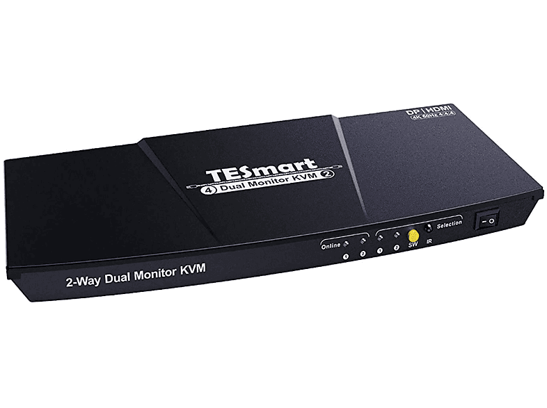 TESHDK0402A1UUSBK TESmart DisplayPort HDMI 4x2 Dual Monitor KVM Swit Tesmart Kvm Switch 4X2 Displayport Dual Monitor Designed specifically for computer devices that. Efficiently manage two pcs with a single keyboard, mouse, and dual 4k60hz displays. Using only 1 set of keyboard, mouse, and 2 monitors to control 4 computers, support keyboard and mouse seamless switching and pass. Tesmart 4 port kvm switch dual monitor displayport, 4k@60hz kvm switch 4 computers 2 monitors, dcci, audio out, usb. Tesmart Kvm Switch 4X2 Displayport Dual Monitor.